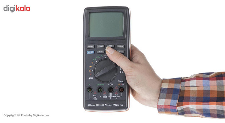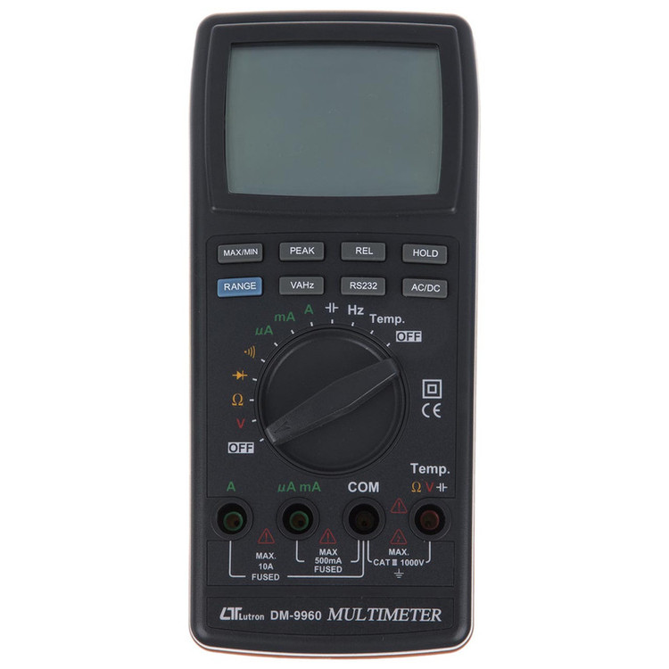 مولتی متر لوترون مدل DM-9960 مولتیمتر دستگاهی است برای مشاهده چندین کمیت الکتریکی از قبیل ولتاژ یا اختلاف پتانسیل و امپراژ یا جریان و مقاومت الکتریکی که میتوان با آن سلامت قطعات یا مشخصات یک قطعه را ارزیابی کرد. مولتیمترها در دو نوع آنالوگ و دیجیتال وجود دارند نوع دیجیتال آن برای مصارف گوناگونی طراحی میشوند که به وسیله یک سلکتر مدور بین کمیتهای الکتریکی میتواند بر حسب نیاز گردش نماید برای استفاده از آن لازم است شما با هر کدام از آن کمیتها آشنا باشید که برای هریک یک واحد مشخص اندازه گیری تعیین میشود. شرکت لوترون از برند های نام آشنا و پر آوازه در ساخت مولتی متر های پرتابل می باشد. این مدل ، مولتی متر DM-9960 یکی از بهترین مولتی متر های بسیار مقاوم و مستحکم موجود در بازار می باشد که قابلیت اندازه گیری ولتاژ AC/DC ، جریان AC/DC ، ترانزیستور ، تست دیود ، مقاومت الکتریکی ، ظرفیت خازنی ، فرکانس و دما را دارا می باشد . این مولتی متر قابلیت اتصال پراب تیپ K و هم چنین قابلیت اتصال به کامپیوتر به وسیله کابل RS-232 و نرم افزار مربوطه را نیز دارا می باشد ، هم چنین به لطف استفاده از حافظه داخلی در محصول می توان مقادیر ماکزیمم و مینیمم را ذخیره کرد .