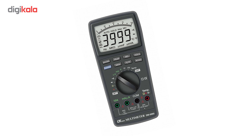 مولتی متر لوترون مدل DM-9960 مولتیمتر دستگاهی است برای مشاهده چندین کمیت الکتریکی از قبیل ولتاژ یا اختلاف پتانسیل و امپراژ یا جریان و مقاومت الکتریکی که میتوان با آن سلامت قطعات یا مشخصات یک قطعه را ارزیابی کرد. مولتیمترها در دو نوع آنالوگ و دیجیتال وجود دارند نوع دیجیتال آن برای مصارف گوناگونی طراحی میشوند که به وسیله یک سلکتر مدور بین کمیتهای الکتریکی میتواند بر حسب نیاز گردش نماید برای استفاده از آن لازم است شما با هر کدام از آن کمیتها آشنا باشید که برای هریک یک واحد مشخص اندازه گیری تعیین میشود. شرکت لوترون از برند های نام آشنا و پر آوازه در ساخت مولتی متر های پرتابل می باشد. این مدل ، مولتی متر DM-9960 یکی از بهترین مولتی متر های بسیار مقاوم و مستحکم موجود در بازار می باشد که قابلیت اندازه گیری ولتاژ AC/DC ، جریان AC/DC ، ترانزیستور ، تست دیود ، مقاومت الکتریکی ، ظرفیت خازنی ، فرکانس و دما را دارا می باشد . این مولتی متر قابلیت اتصال پراب تیپ K و هم چنین قابلیت اتصال به کامپیوتر به وسیله کابل RS-232 و نرم افزار مربوطه را نیز دارا می باشد ، هم چنین به لطف استفاده از حافظه داخلی در محصول می توان مقادیر ماکزیمم و مینیمم را ذخیره کرد .